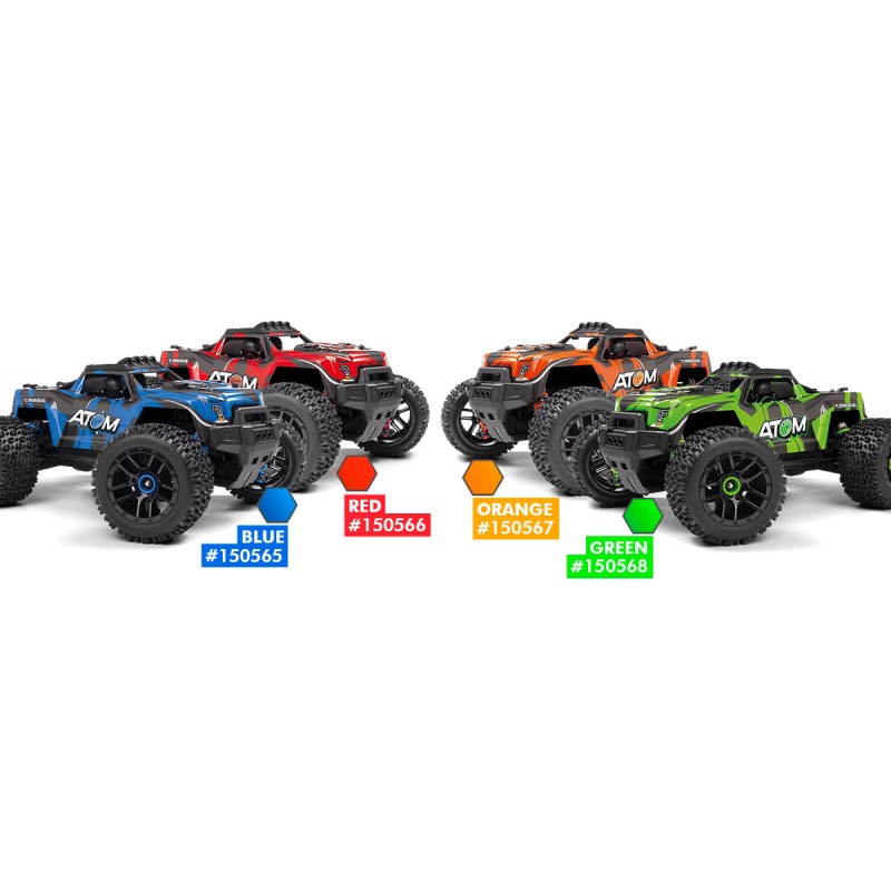 Il telaio a nido d'ape è leggero e fornisce la spina dorsale super resistente dell'ATOM Monster Truck. Le barre Side Impact proteggono il bordo inferiore della carrozzeria. Tutti e quattro gli ammortizzatori in tinta includono un corpo filettato che consente di regolare facilmente la configurazione dell'ammortizzatore in movimento!