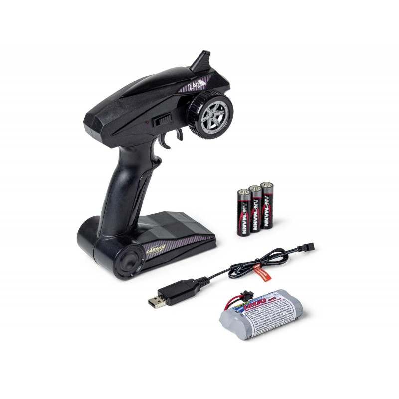 modello completamente assemblato, telecomando da 2,4 GHz, batteria agli ioni di litio da 7,4 V / 1200 mAh, caricabatterie USB, 3 batterie AA per il trasmettitore, manuale di istruzioni.