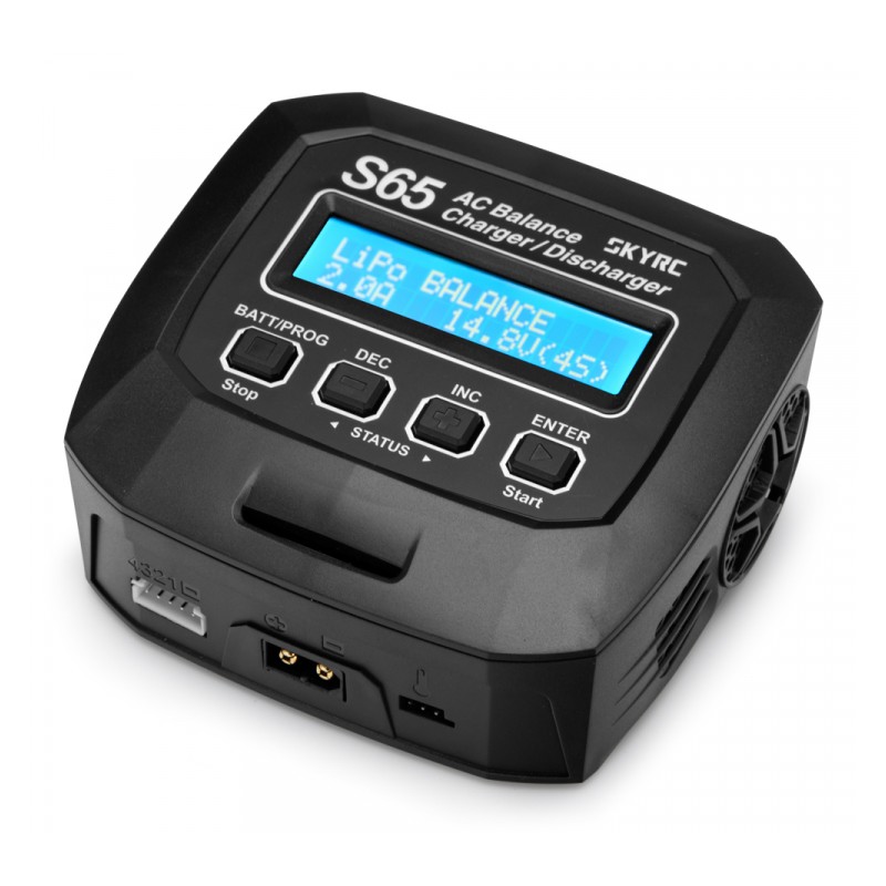 Il caricabatterie / scaricatore professionale SkyRC S65 AC si distingue per il suo design angolare e le dimensioni compatte racchiudendo una grande potenza di 65 watt in una custodia così piccola. Compatibile con una gamma completa dei più diffusi tipi di batterie, incluso il LiHV di nuova generazione, l'S65 mantiene le batterie alimentate con 6 A di potenza di carica.