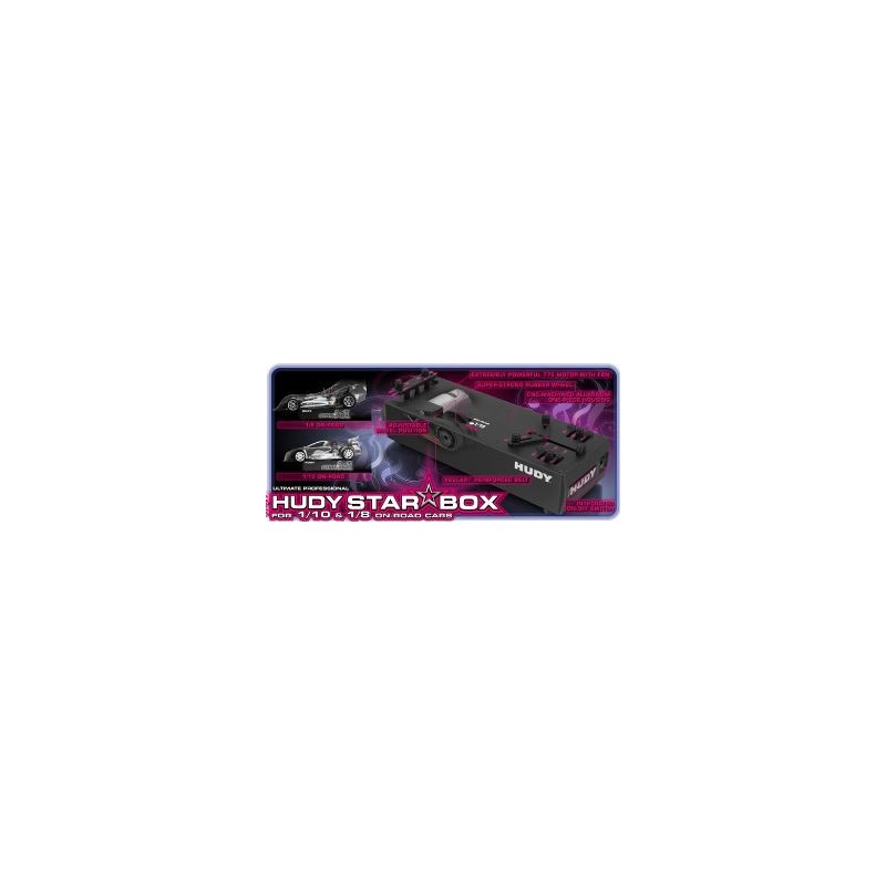 La HUDY Star-Box è una scatola di avviamento unica progettata per 1/10 e 1/8 nitro a bordo di auto la stella finale tra tutte le casse di avviamento sul mercato! Il design più basso e ultra-compatto della scatola degli avviatori di questo mondo ha un peso molto leggero, solo 575g / 1.27lb (w / o batterie). Unici appendici di supporto della staffa di sostegno nella scatola di avviamento per consentire la completa rotazione della ruota di avvio. I backstops regolabili consentono di montare 1/10 e 1/8 vetture su strada. La Star-Box ha un design elegante e ultra raffinato ed è completamente assemblato, pronto all'uso. Il sistema di cinghia di trasmissione a lunga durata, di qualità superiore, esegue un potente motore a 775 (con ventola) alimentato da due pacchetti di bastone da batteria standard da 7,2 V (non inclusi). L'alloggiamento in alluminio lavorato a CNC ha un rivestimento nero di alta qualità per una maggiore durata. Le viti di contenimento del bancone sono incassate con superficie per eliminare le sporgenze indesiderate. Un interruttore integrato per una comoda commutazione di accensione / spegnimento è collegato ad un cablaggio di qualità di prima qualità con cavi extra-spessi e connettori rapidi a rapida modifica, senza saldatura necessaria. Il sistema di avviamento a cambio rapido è stato progettato per consentire una semplice e veloce sostituzione della ruota di avviamento solo con 3 viti! Una maniglia composita integrata con copertura posteriore ergonomica consente un trasporto confortevole.
