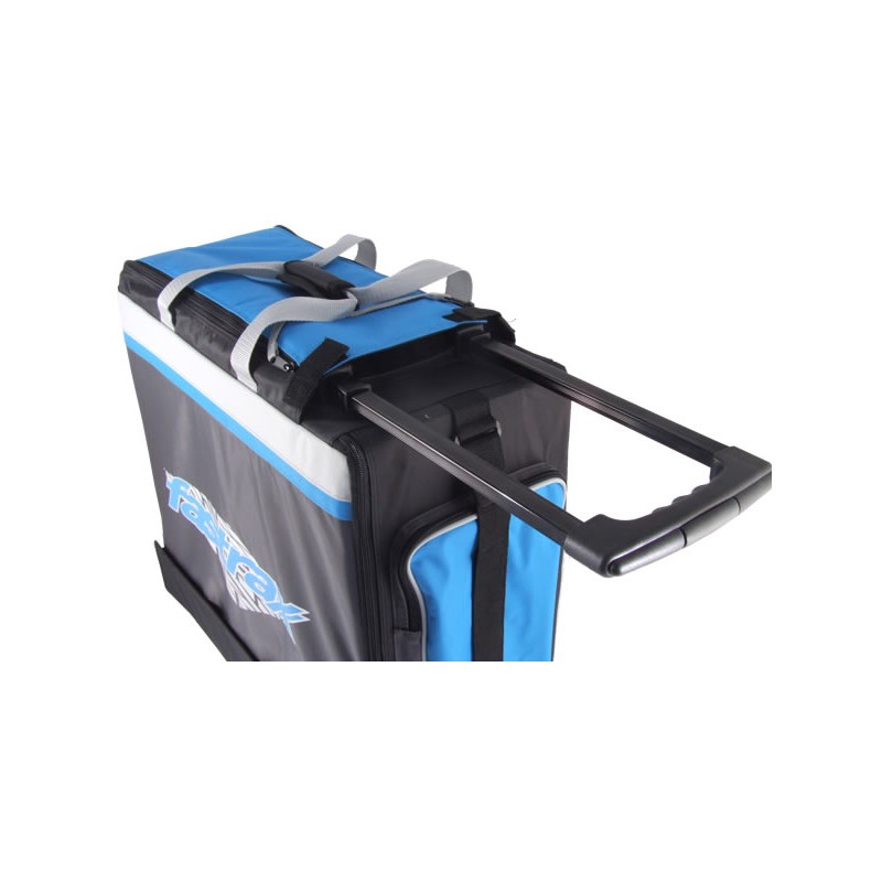 La copertura stessa è realizzata in nylon resistente abbastanza spesso da resistere agli strappi e all'uso quotidiano. Adornata con il logo e i colori Fastrax, questa borsa ha l'aspetto che si abbina alla sua robustezza. Le ruote per impieghi gravosi si trovano sul lato opposto per facilitare anche il traino.
