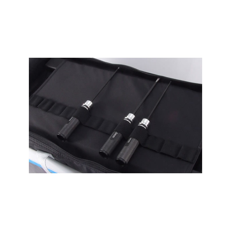 Le sue 5 scatole di cartone rimovibili tengono le tue cose al sicuro e ulteriore spazio può essere trovato in tutta la borsa. In alto c'è un inserto unico progettato per riporre i tuoi strumenti durante il trasporto. Può anche essere rimosso quando si desidera lavorare sul veicolo. Lo spazio aggiuntivo sulla parte superiore, posteriore e laterale della borsa è perfetto per riporre decalcomanie, blocchi per appunti e altri oggetti che richiedono particolare attenzione.